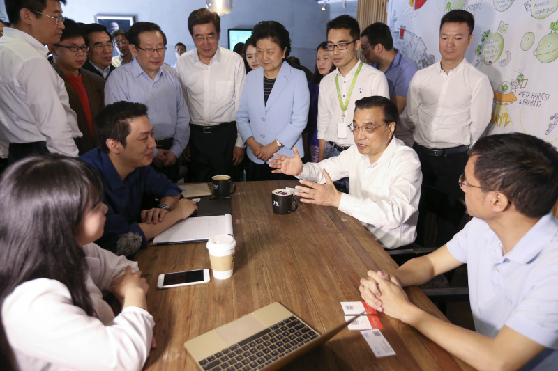 2015年5月7日,李克強(qiáng)來(lái)到中關(guān)村創(chuàng)業(yè)大街3W咖啡。他坐下來(lái)與年輕人邊喝咖啡邊聊創(chuàng)業(yè)。蜂擁圍攏過(guò)來(lái)的創(chuàng)業(yè)者爭(zhēng)搶著向總理介紹各自的項(xiàng)目。聽(tīng)到大家各種奇思妙想的創(chuàng)意,總理感嘆道:“這里精彩紛呈,什么想法都有!真正知道社會(huì)需求的是大眾,這正是大眾創(chuàng)業(yè)的精髓所在。”(資料圖)