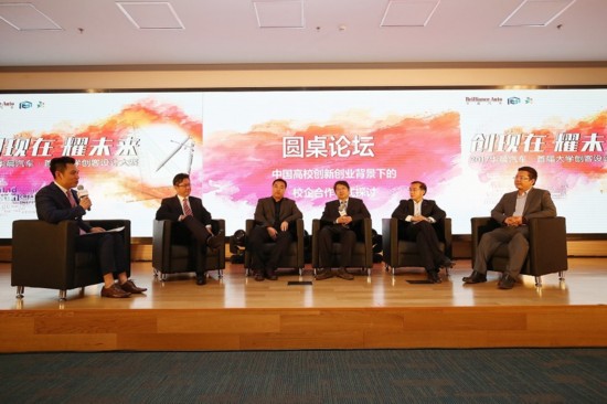 圓桌論壇上,參會領(lǐng)導和嘉賓圍繞“中國高校創(chuàng)新創(chuàng)業(yè)背景下的校企合作模式“這一主題進行探討。