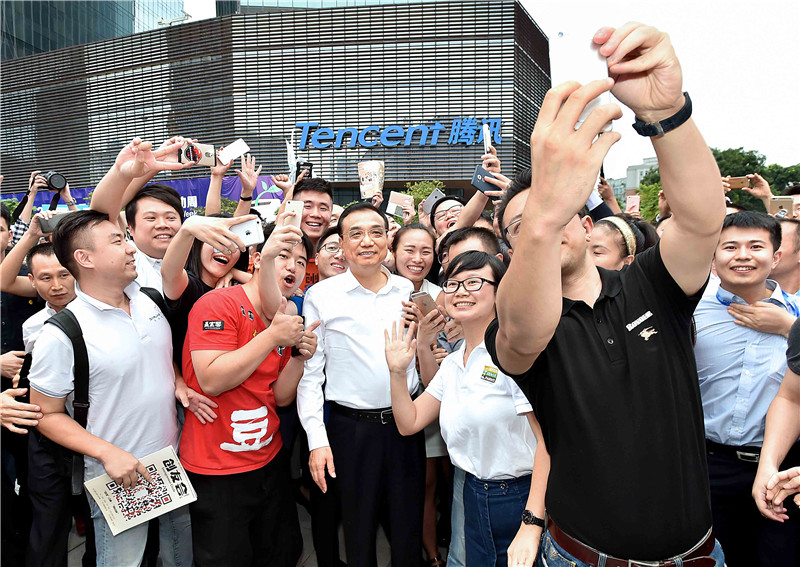 2016年10月12日,李克強在深圳全國“雙創(chuàng)”周活動主會場深圳灣創(chuàng)業(yè)廣場與年輕創(chuàng)業(yè)者合影留念。(資料圖)